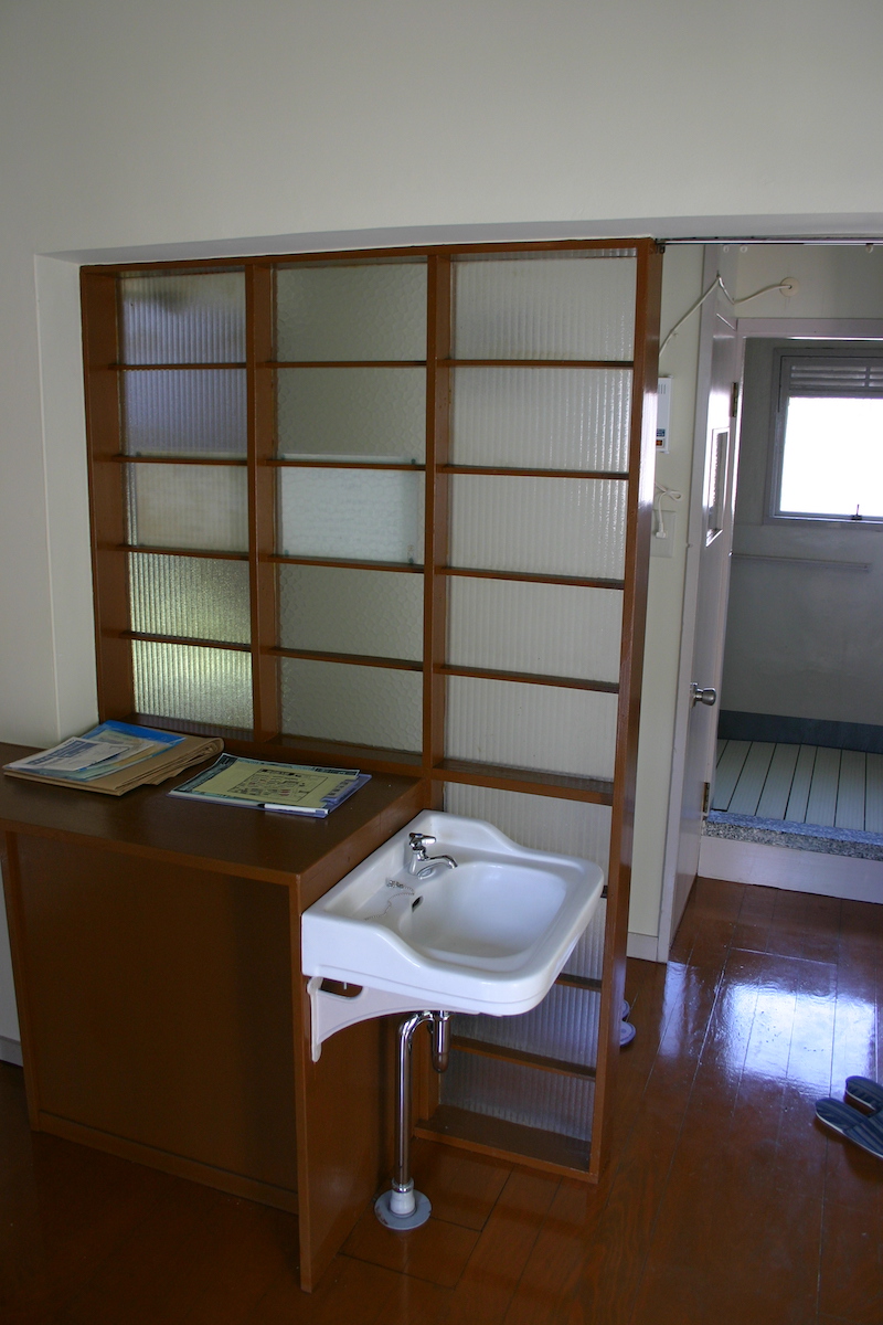 こんな場所に洗面器が設置されています。松戸市立博物館の常盤平団地の展示と同じですね。