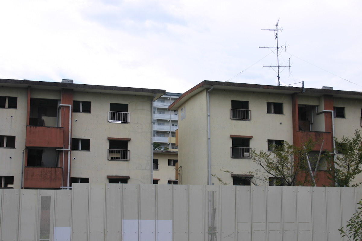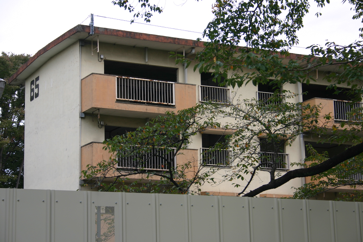 2007年は、北側のエリアの広い範囲で解体工事が行われました。窓枠や建具が撤去されると、重機でゴリゴリ削られていきます。団地の最期の姿は、悲しいですね。