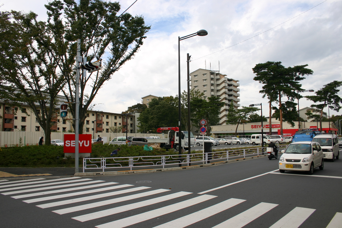 古い西友は閉店し、団地北東部の一角に新しい西友ができました。後ろに解体中の住棟が見えます。