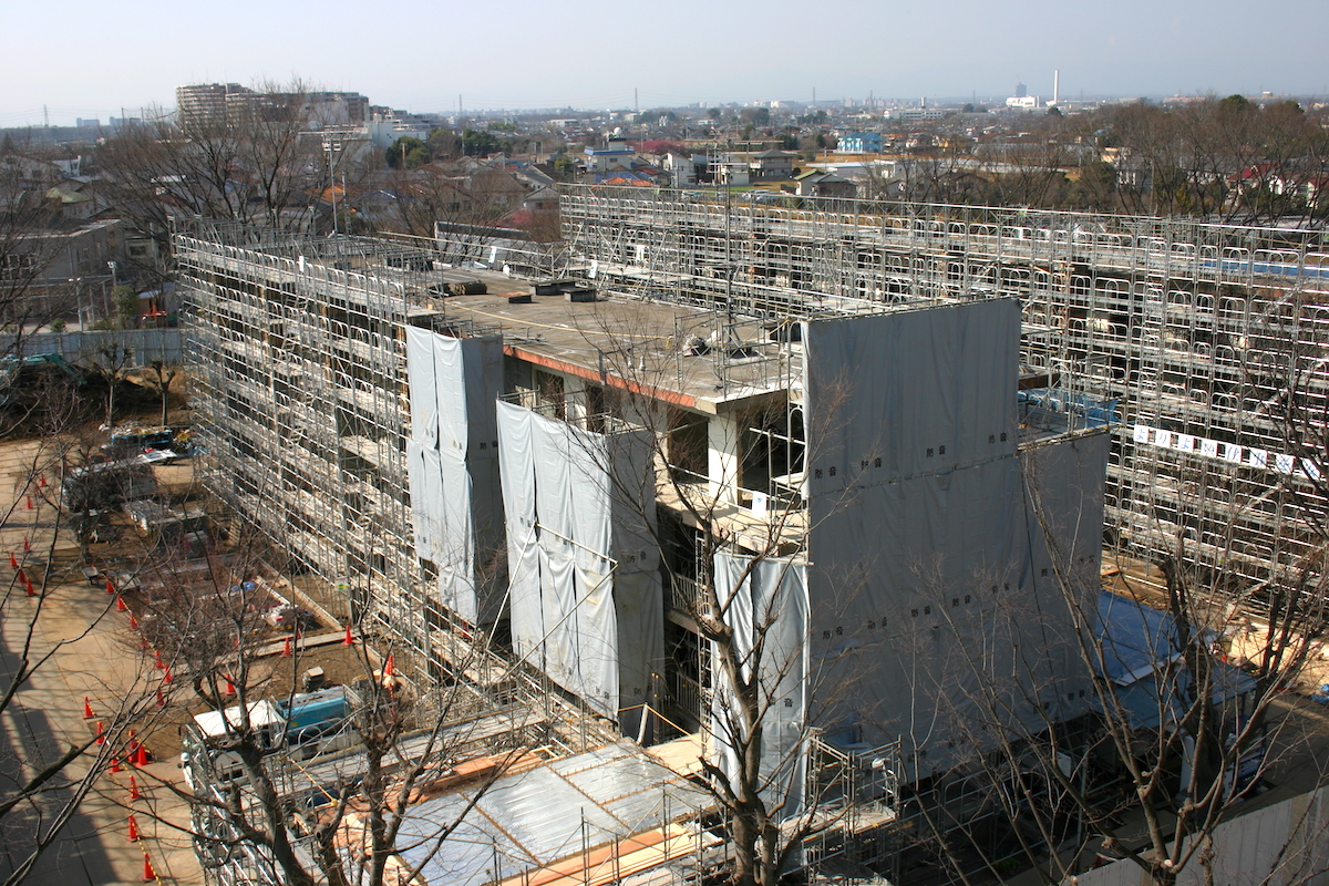 URではルネッサンス計画と称して、住棟の大規模改修の技術開発を行っており、ひばりが丘団地と向ヶ丘第一団地(大阪府堺市)で実証試験が行われました。この検証結果を生かし、多摩平団地において民間と協働で住棟単位のルネッサンス事業を実用化しました。