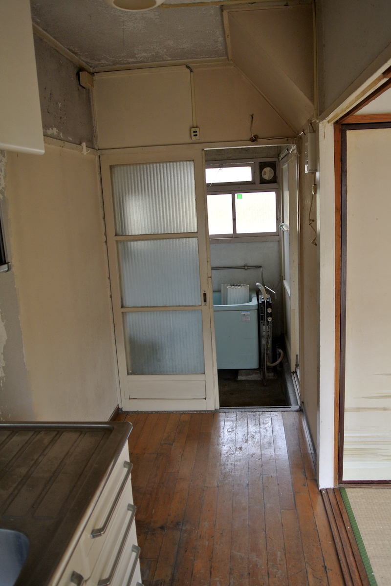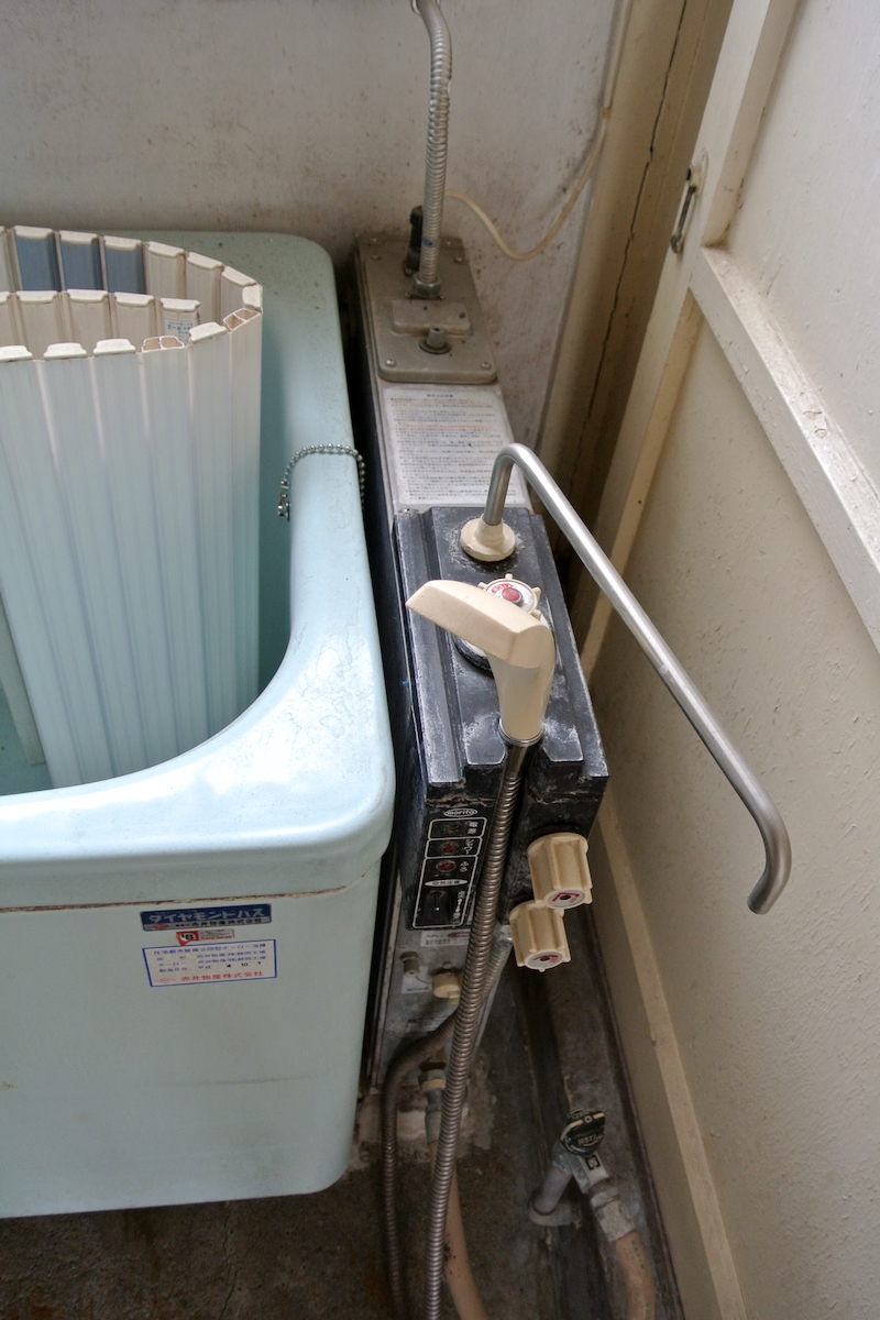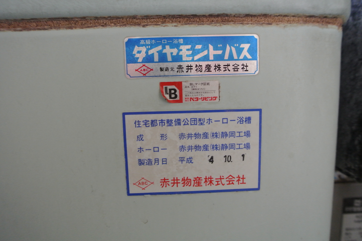 玄関を入るとすぐ隣が浴室。浴槽とバランス釜で、平成4年に交換されたものです。