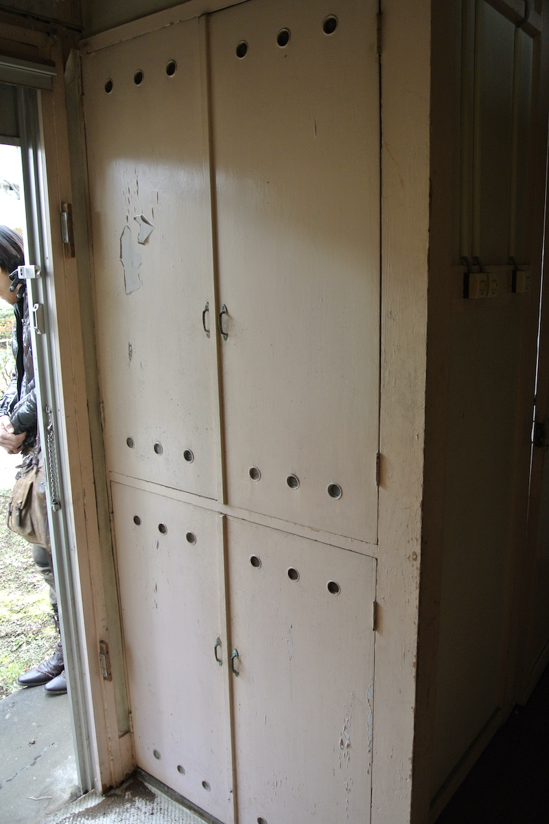 この丸い空気穴がついた下足入れ、懐かしいなあ。うちにもあった。