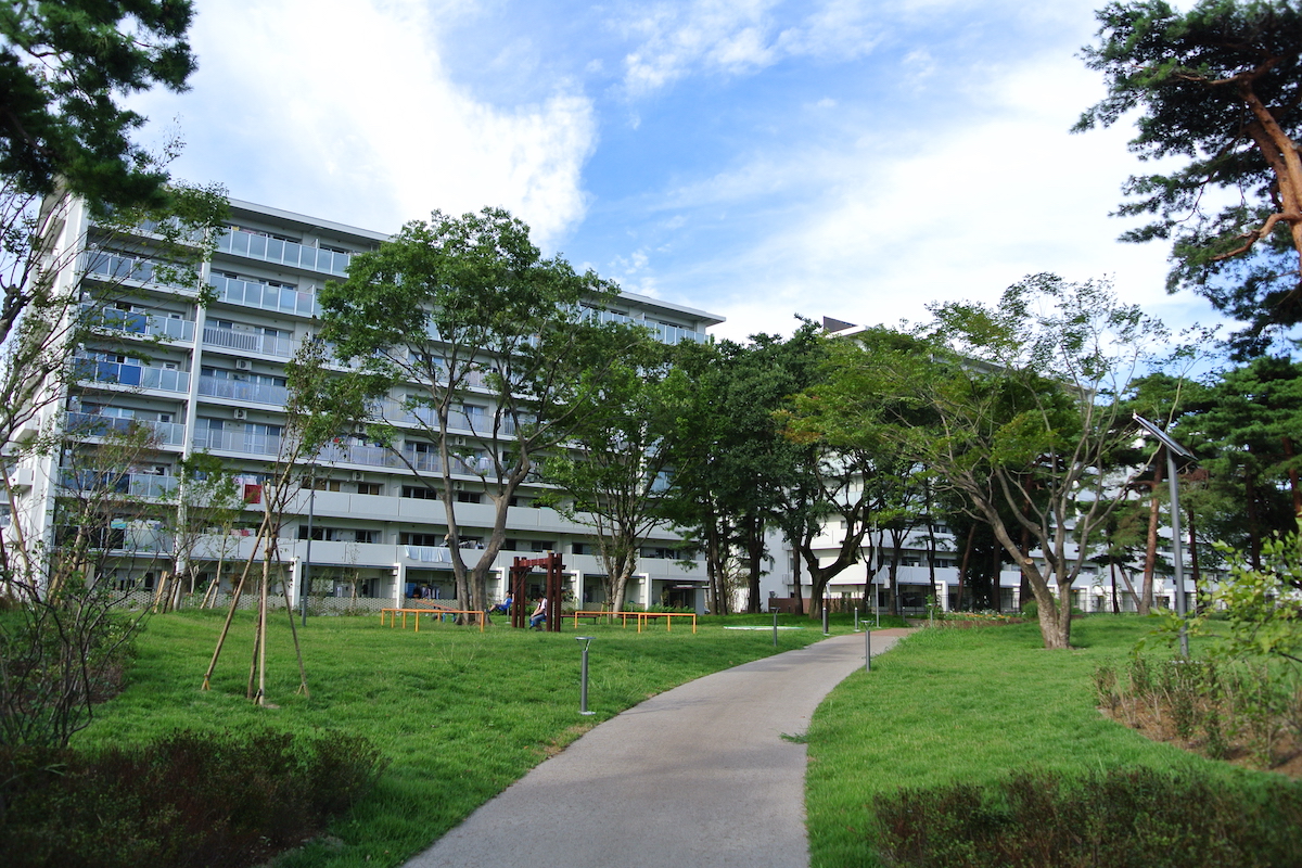 小世帯型住戸が並ぶエリアは民間に売却され、マンションになりました。