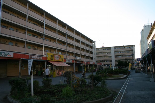 団地の中には囲み配置の商店街があります。赤羽の桐ヶ丘アパートの商店街と似た雰囲気で、昭和レトロのムードが漂ってます。
